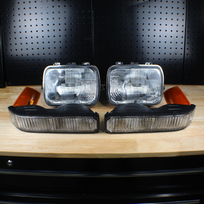 Restore the front end of your 1988-1998 Chevrolet W/T with this complete headlight kit! Oxidation, collisions, and other elements can kill the look of your truck as well as reduce the effectiveness of your light output. Now you can renew the headlights, side markers, and park lights on your OBS W/T with this all in one kit! Featuring two new glass lens, sealed beam headlights; these are direct replacement for your originals with a plug and play 3 prong connector. Driver and passenger side amber reflectors are included to ensure your lights are legal. Finally, a pair of the signature W/T park lights with curved, fluted lenses close out this kit to replace every component of your front end lights with high-quality replacements! With this all in one kit you can rest assured your W/T headlights will look good as new.